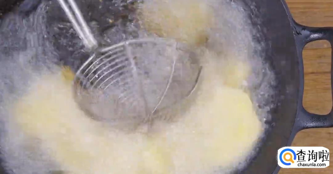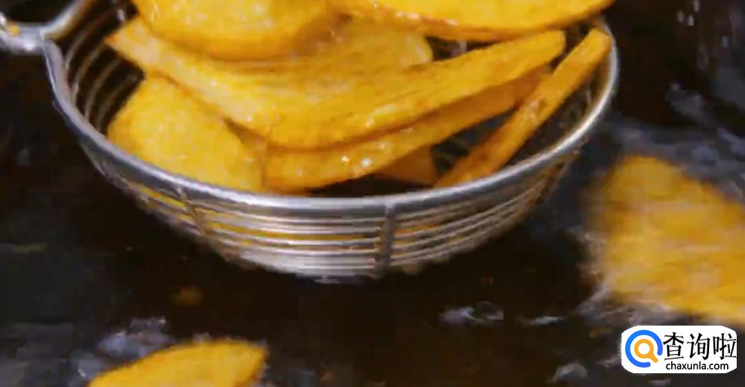 土豆下锅,炸至两面金黄捞出,滤干油分。