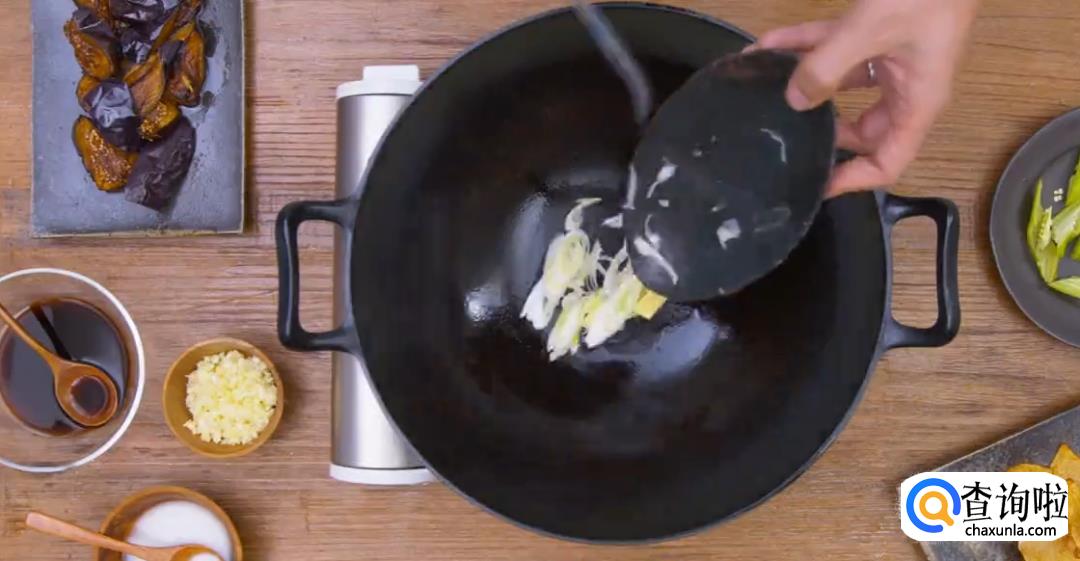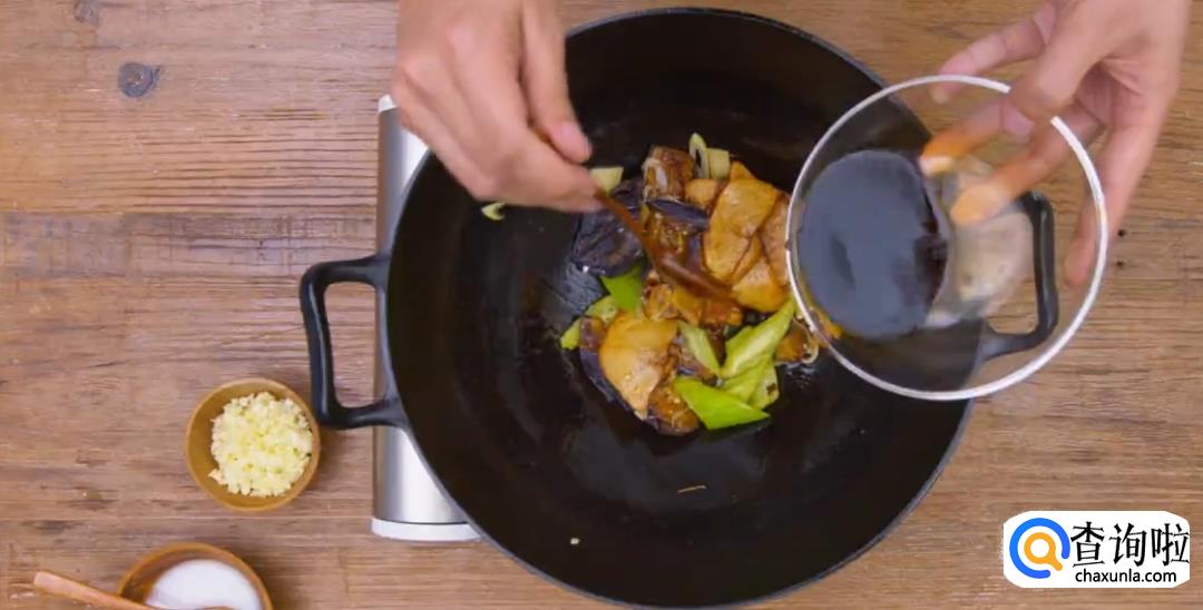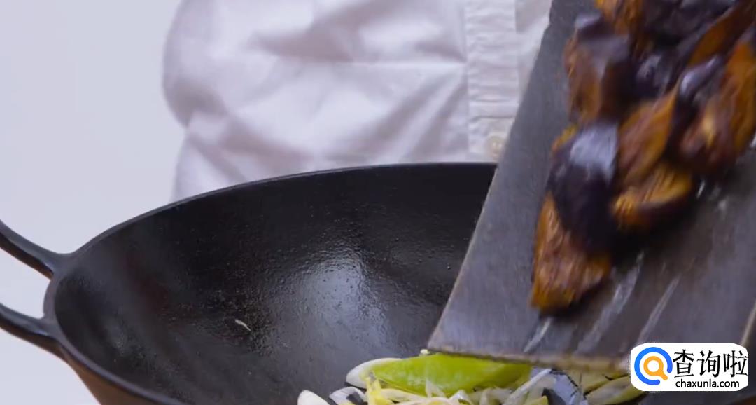 热锅起油,烧至七成熟,下茄子,炸至焦黄收边,然后滤干油分。