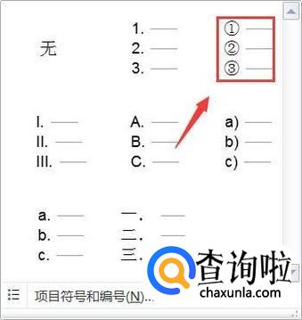 点击编号在其下拉列表里选择一种编号,如图所示: