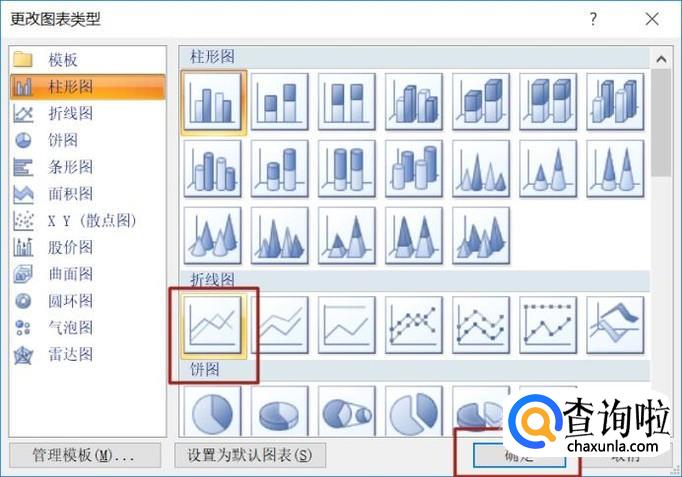 弹出的界面,我们选择折线图,并点击确定;