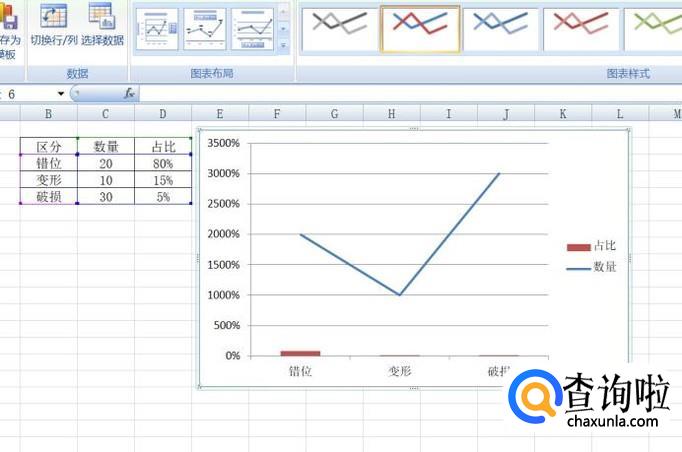这样,我们就可以看到具体的不良数量的诧异了,其次也能看到占比的情况。