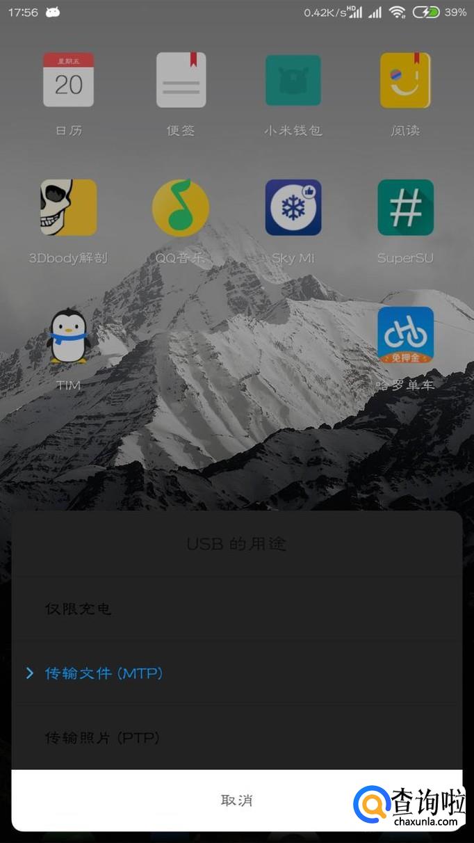 然后把OTG比较大的那头连接MP3的A型接口,另外一面插到MP3上面,OTG的另一头连接手机,等待几秒钟。