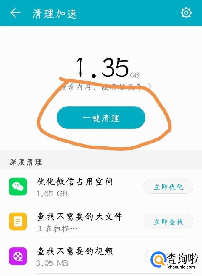 进入清理加速功能之后系统会自动帮你识别手机系统里的垃圾文件。识别完成之后点击“一键清理”功能,开始清理手机里的垃圾文件