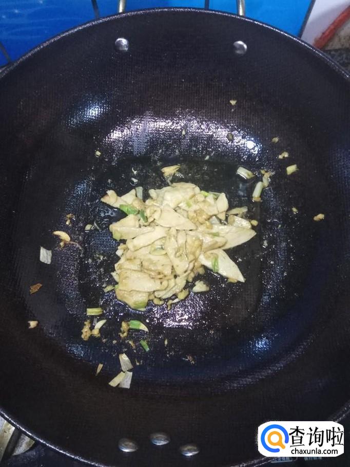 炒锅中放入适量油,油热后将鸡脯肉倒入锅中炒香,炒至鸡脯肉颜色发白就可以了。