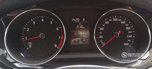 在车上的仪表盘上有很多板块,左边的圆盘是马达转速档,表示的是发动机的转速,右边的圆盘是时速表,表示的行驶速度。中间的几个数据,第一排表示的是时间,第二排表示的是车内的温度,下方表示的车的总里程及所剩油量。