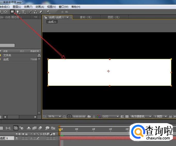 选择固态层,在合成窗口空白区域,绘制一个长方形矩形遮罩。