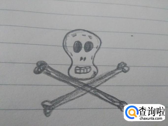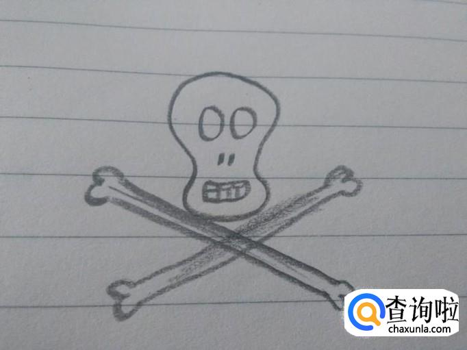 在骷髅头的下面画一个十字叉的骨头,一般都是和骷髅头一起的。