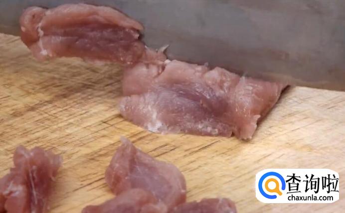 建议选用比较嫩的小里脊,切片后不包浆直接放入油中煸炸,这样更能带出肉的香味,也让口感更加丰富。