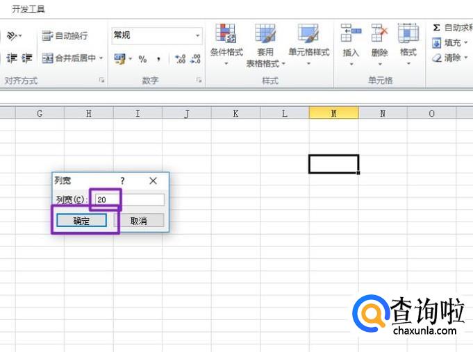 然后我们继续点击格式的下拉箭头,然后选择列宽,输入20,点击确定,就把宽度改了,效果如图。