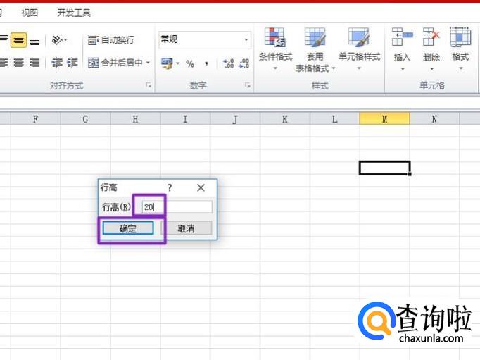 弹出的界面,我们点击行高,然后输入20,然后点击确定,就把高度更改了;