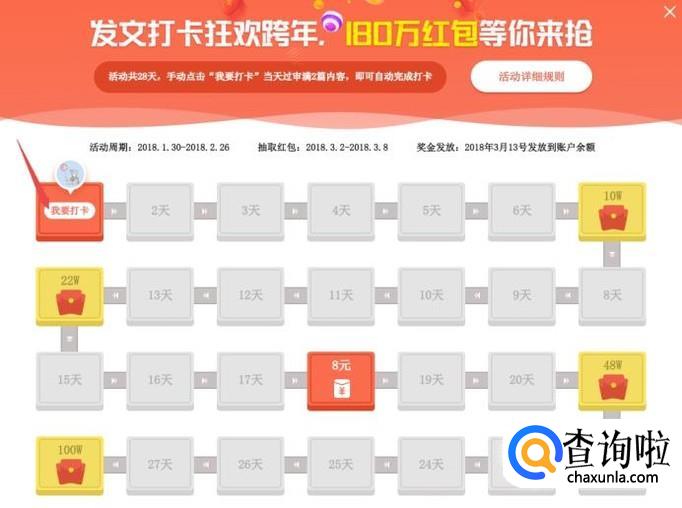 活动共28天,手动点击“我要打卡”当天过审满2篇内容,即可自动完成打卡