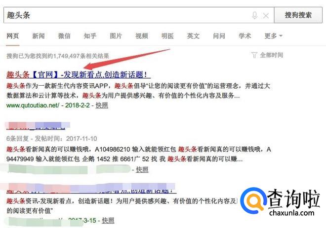 首先在浏览器中搜索“趣头条”。