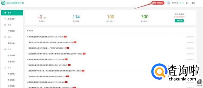 登录注册的趣头条作者账号,点击“打卡赚红包”进入下一个页面。