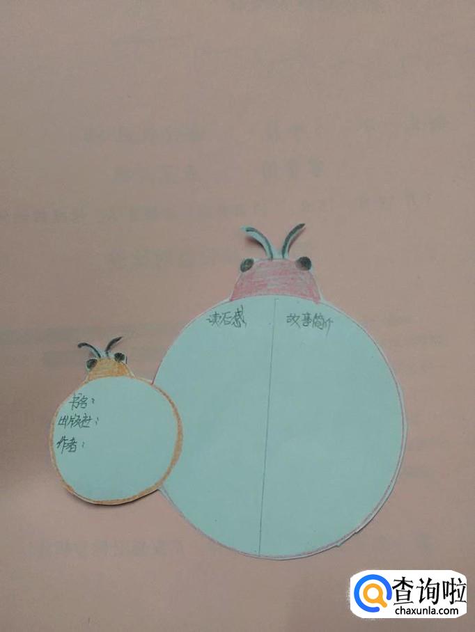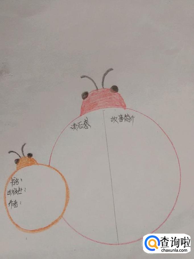 再用铅笔在大瓢虫背上画一条竖线,在竖线左侧写读后感,在竖线右侧写故事简介。