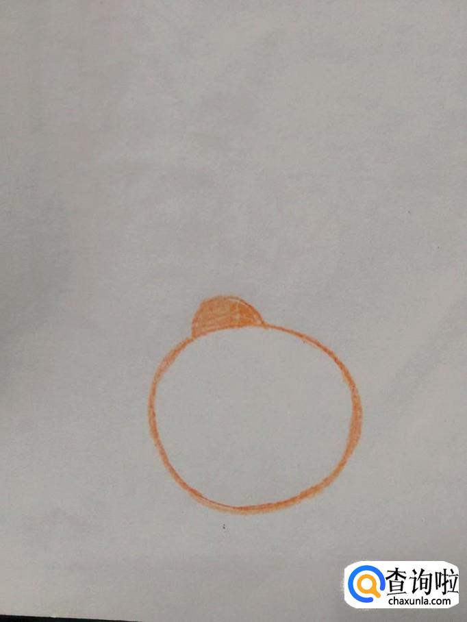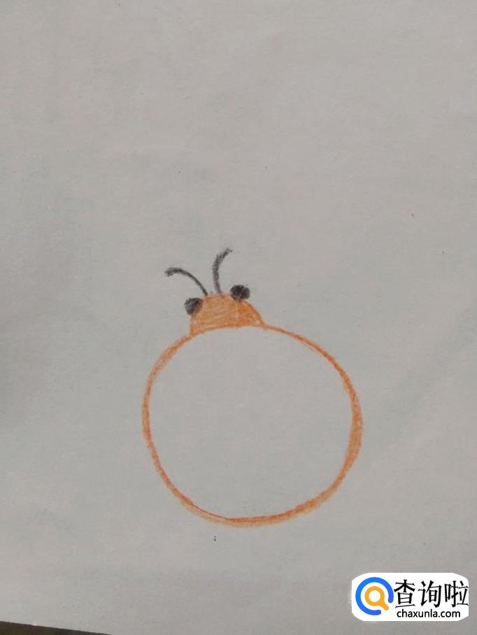 先用桔黄色彩笔在纸上画一个小的圆形,表示小瓢虫的背。