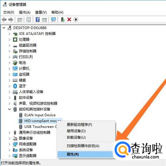 接下来找到我们的鼠标设备名称,右击鼠标,点击进入“属性”。