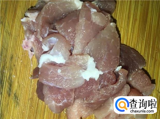 瘦肉清洗干净,切成薄片;大白菜清洗干净,摘成小块,备用。