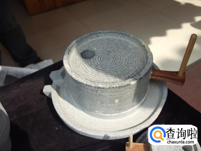 石磨由两个圆石做成,一般是石头制的。石 磨是平面的两层,两层的接合处都有纹理,粮食从上方一层的石磨孔进入两层中间,随着人力的推动,粮食随着纹理向外移动,在滚动过两层面时被磨碎,形成粉末或浆。