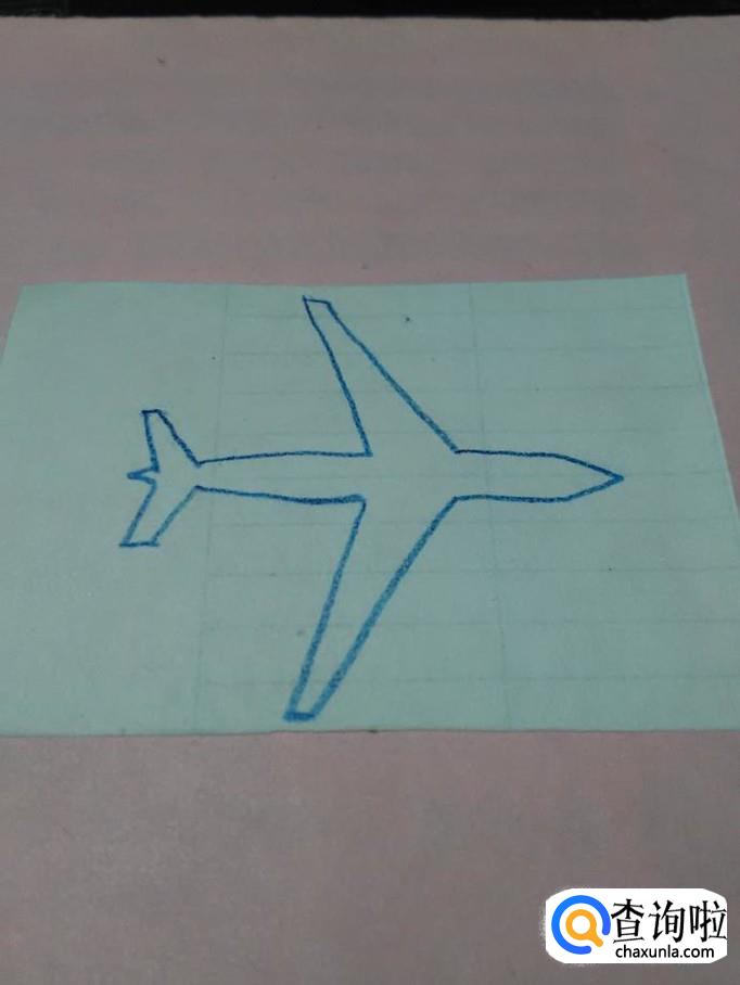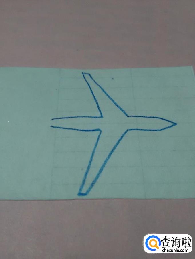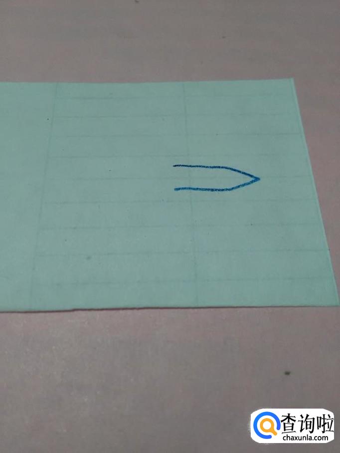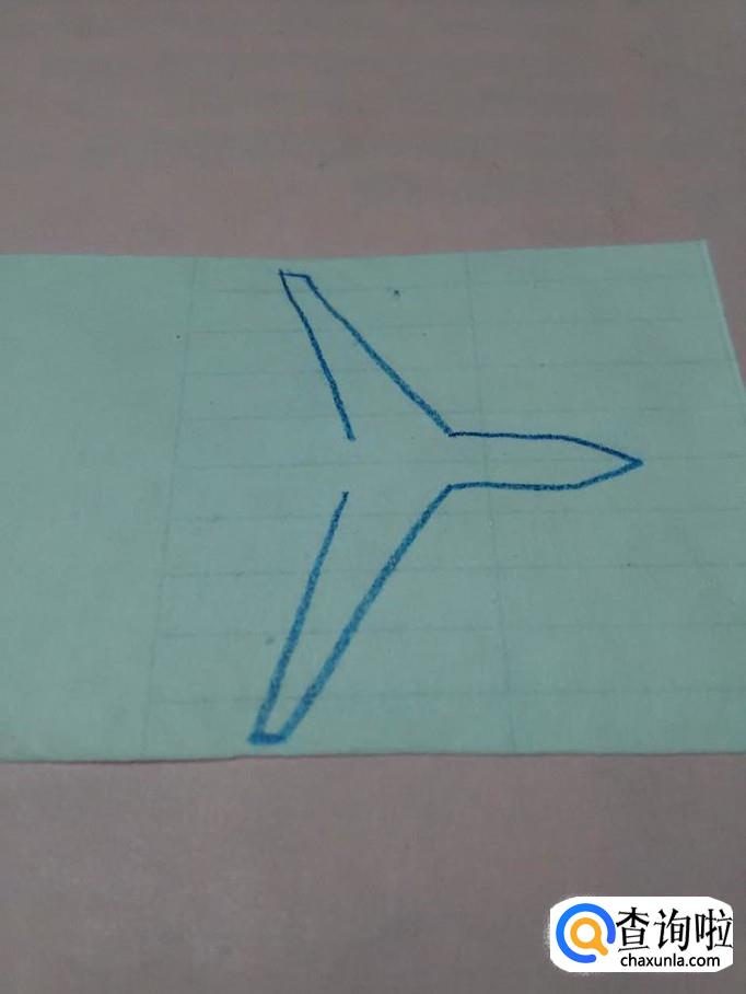 先用蓝笔在纸上画两条相交的折线,相交处表示机头。