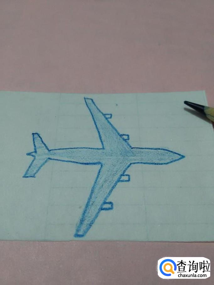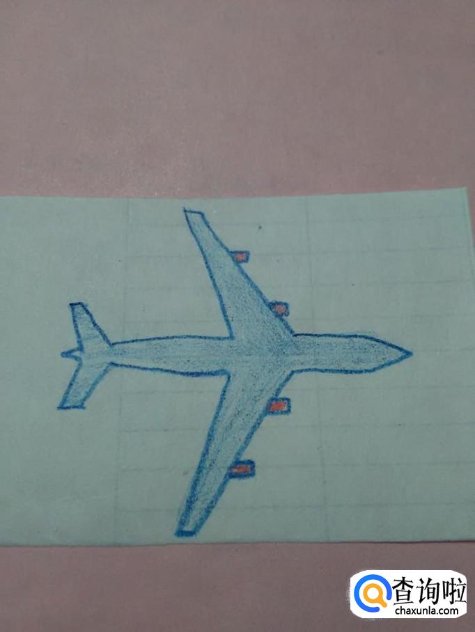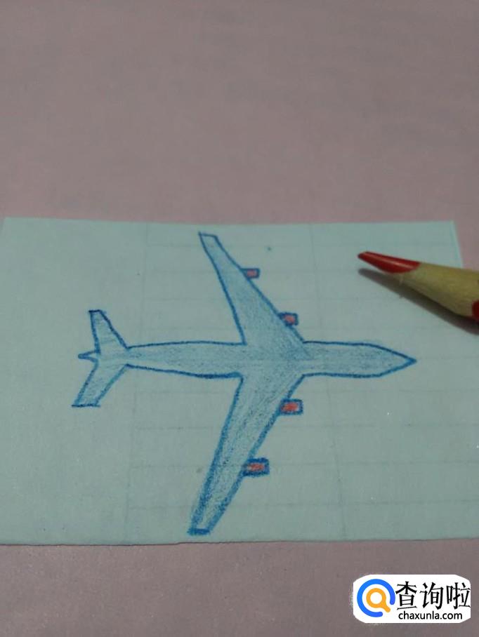 用红笔将两翼上的灯涂成红色,飞机就画完了。