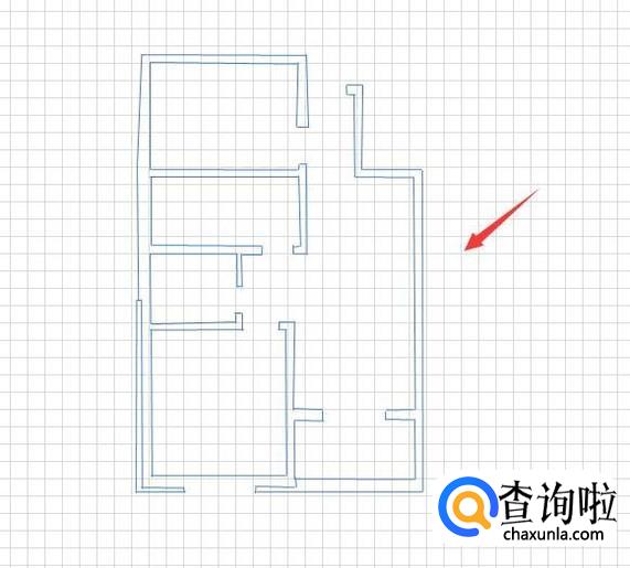 选择直线选项,在编辑区里绘制出平面图的墙体结构,如图所示: