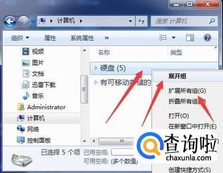 首先,如图,在左侧导航点击计算机,右侧显示的界面即为折叠组。