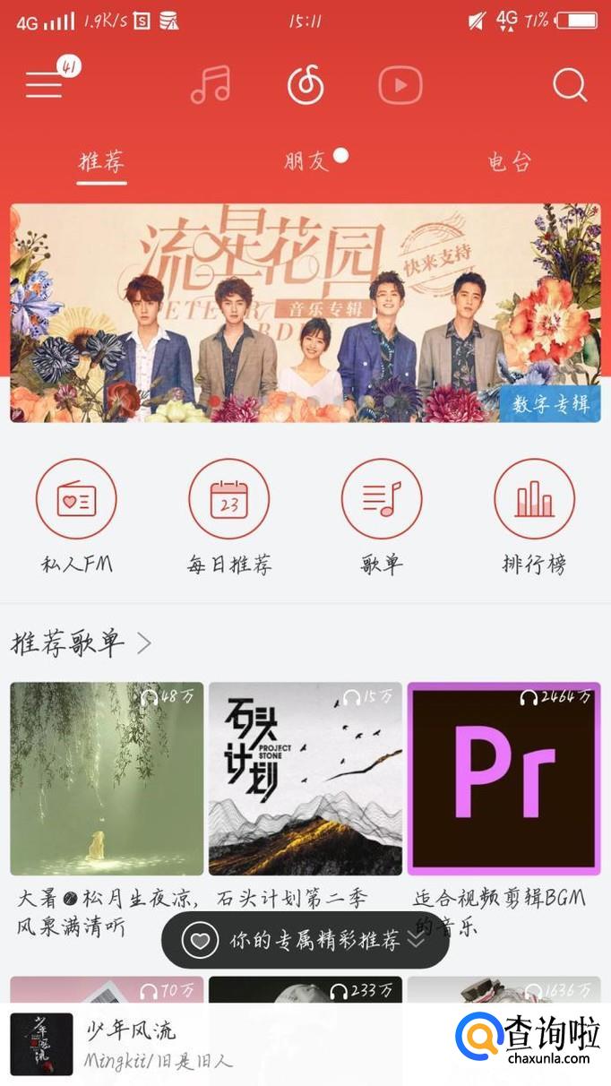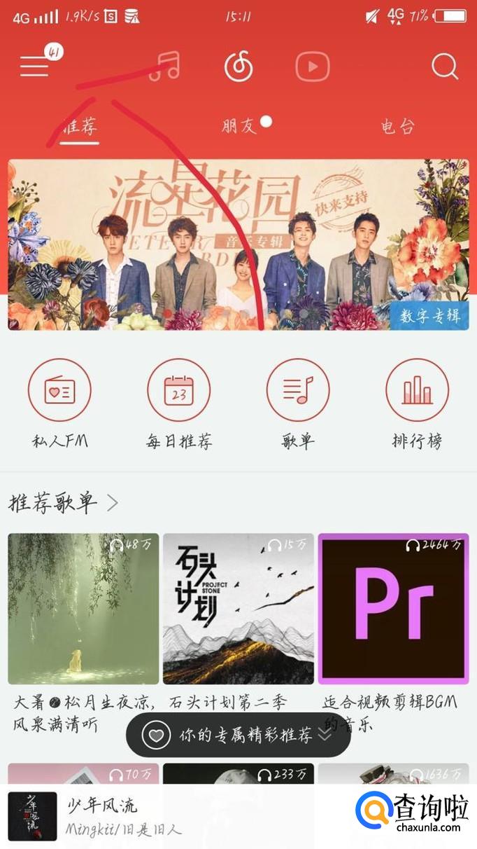 首先打开网易云这个软件,如图1所示。进入网易云后会看到一个新的界面,如图2所示。