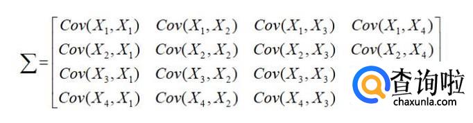 如果协方差结果为正值,则代表两个相应变量之间的关系为正相关,如果为负值则为负相关,如果为0则代表不相关。将每个元素的协方差数值代入矩阵,即得出协方差矩阵的数字形式。