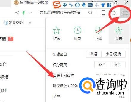 首先,打开浏览器右上角的选项,找到“清除上网痕迹”点击,对上网痕迹进行清除消除提示脚本错误异常;