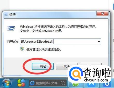 弹出界面以后,输入regsvr32jscript.dll,点击确定;