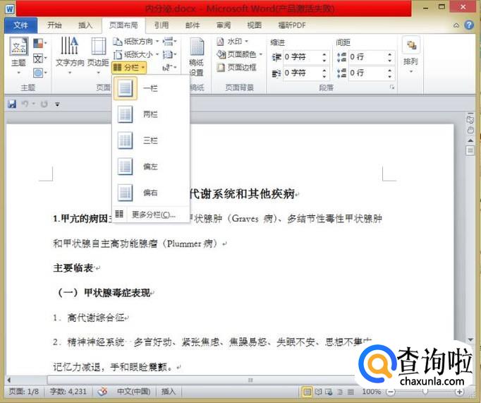 然后打开我们的“页面布局”选项卡,并在“页面布局”选项卡找到”分栏“