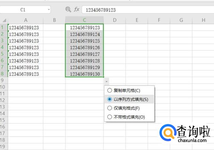 这时候下拉,发现可以实现预期的自增效果