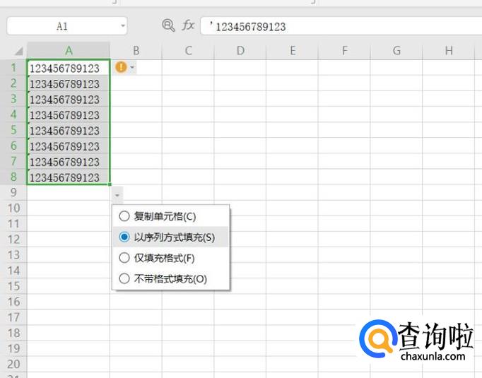 打开一份空白的表格文件,在A1中输入12位数字,然后我们向下拉,发现数字没有预期递增