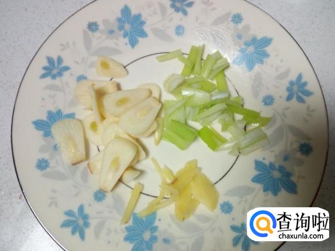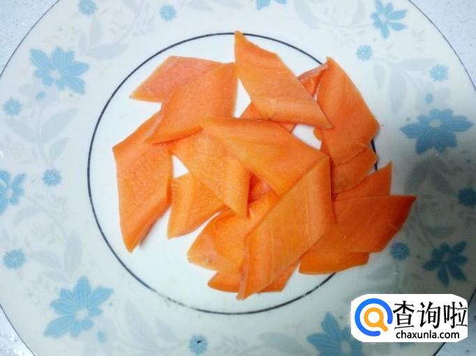 胡萝卜去皮,用水清洗干净,控干水分,切成片。切好葱,姜,蒜,备用。