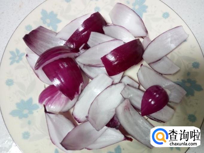圆葱去皮,用水清洗干净,控干水分,切成片。