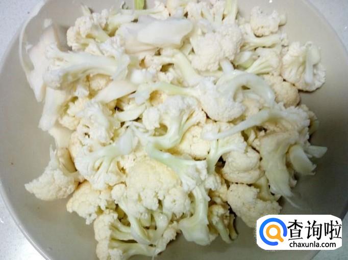 有机菜花用手掰成小朵,用水清洗干净,控干水分。