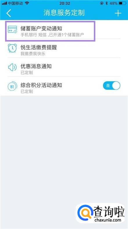 接着点击储蓄账户变更通知,如下图所示。