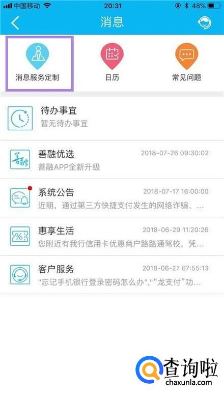 然后点击消息服务定制,如下图所示。