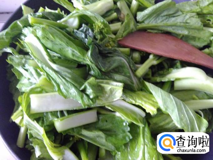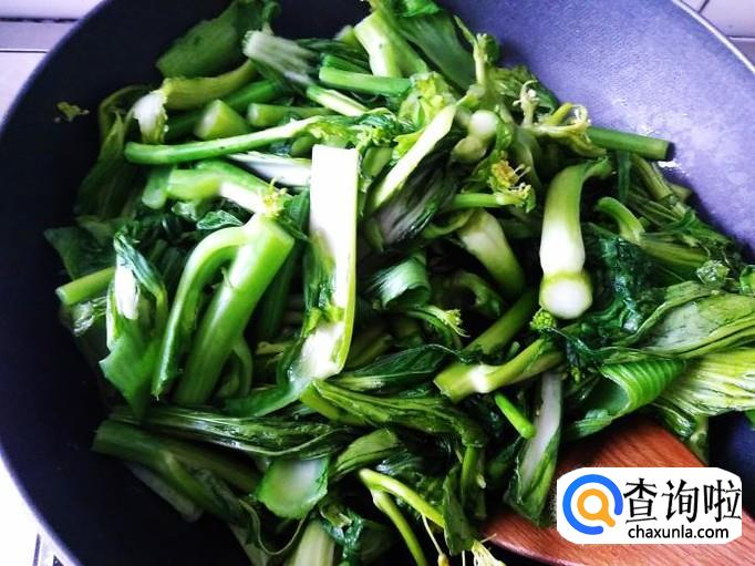 开火,把芥菜心放进去加适量的盐。