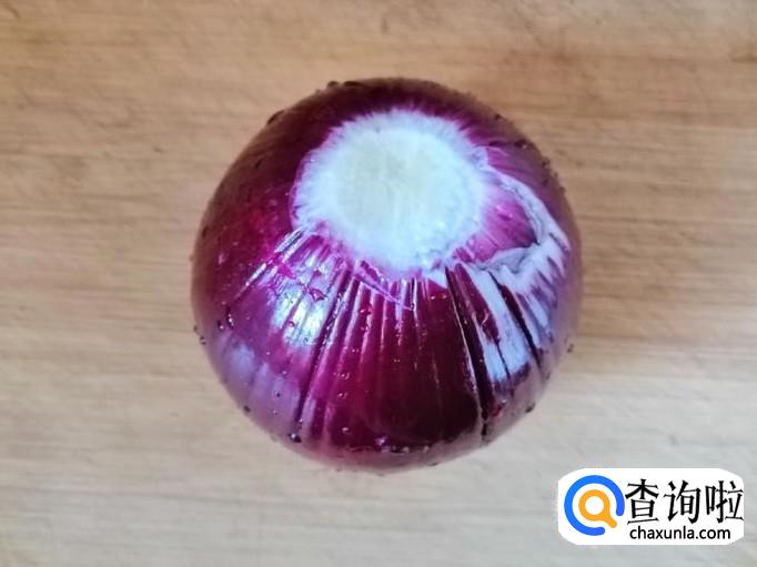 取新鲜的圆葱,先把圆葱剥皮,然后把圆葱用清水洗净,切去头尾,把圆葱切丝待用,我是炒菜时留了少许圆葱备用。