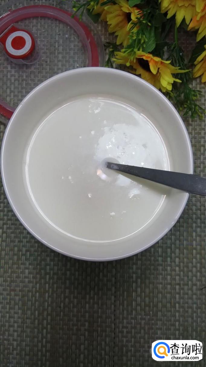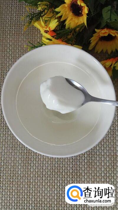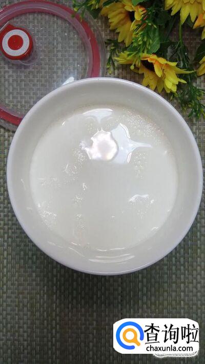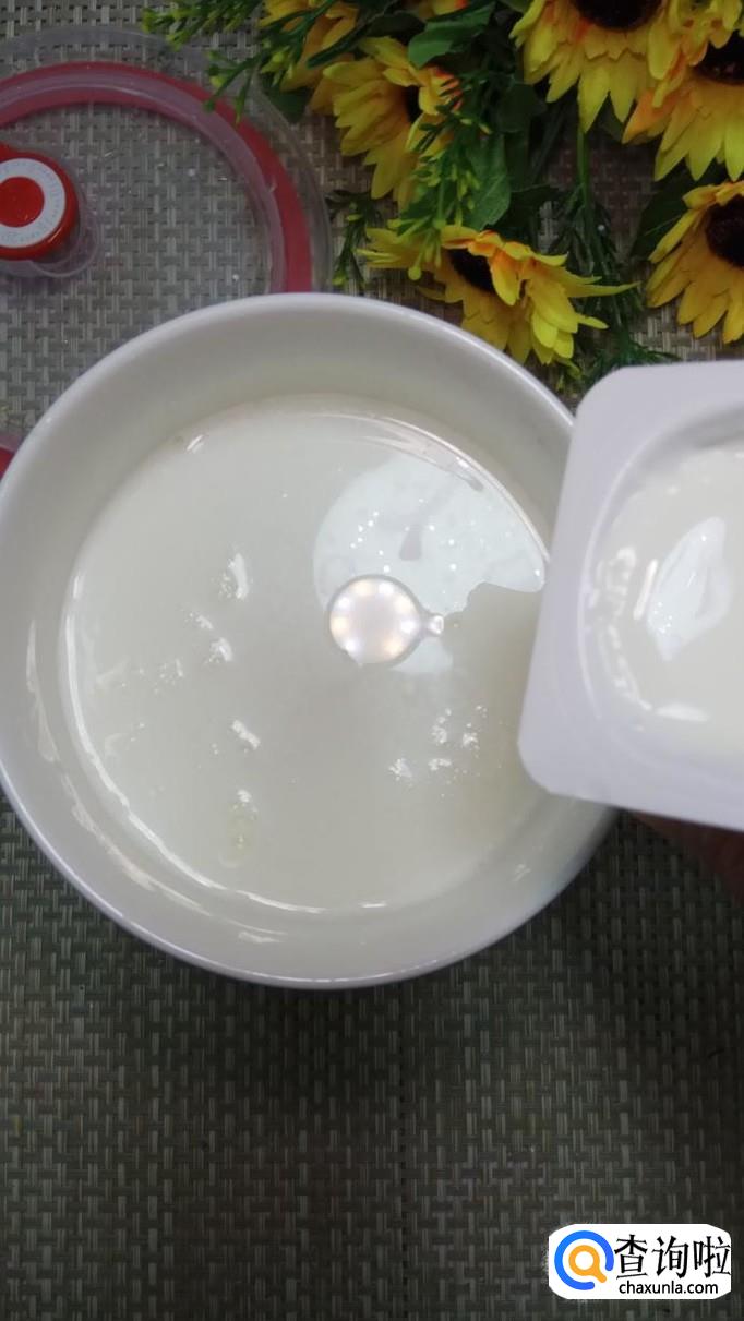 将纯牛奶倒入器皿中,再将酸牛奶倒入纯牛奶中。