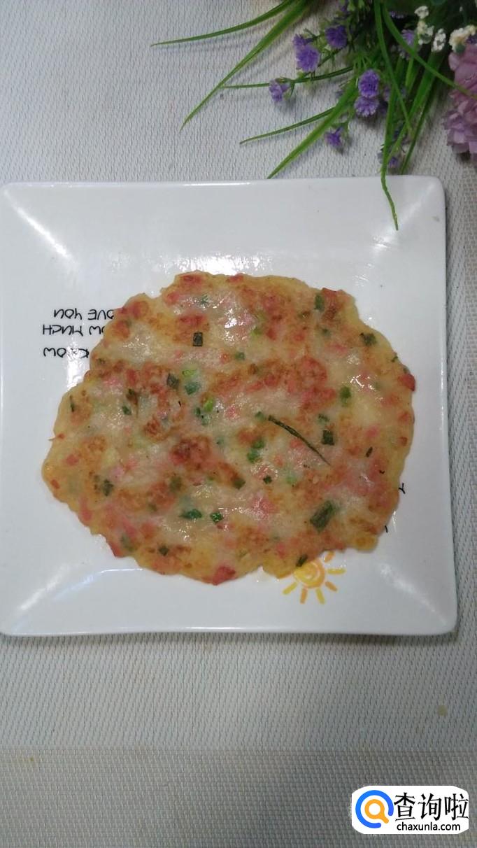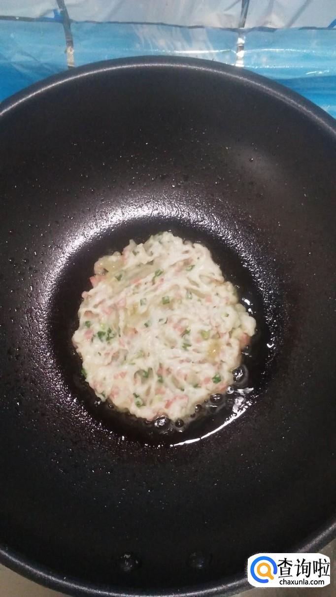 平底锅刷油,油热后,倒入适量面糊,尽量摊平。