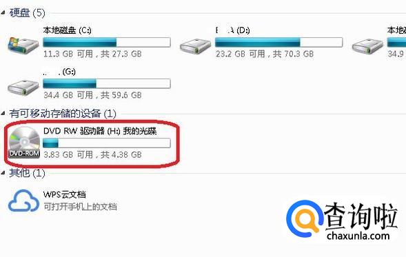 此时,光驱会有运转的声音,然后我们双击打开“计算机”,可以看到光盘的图标,如图所示。