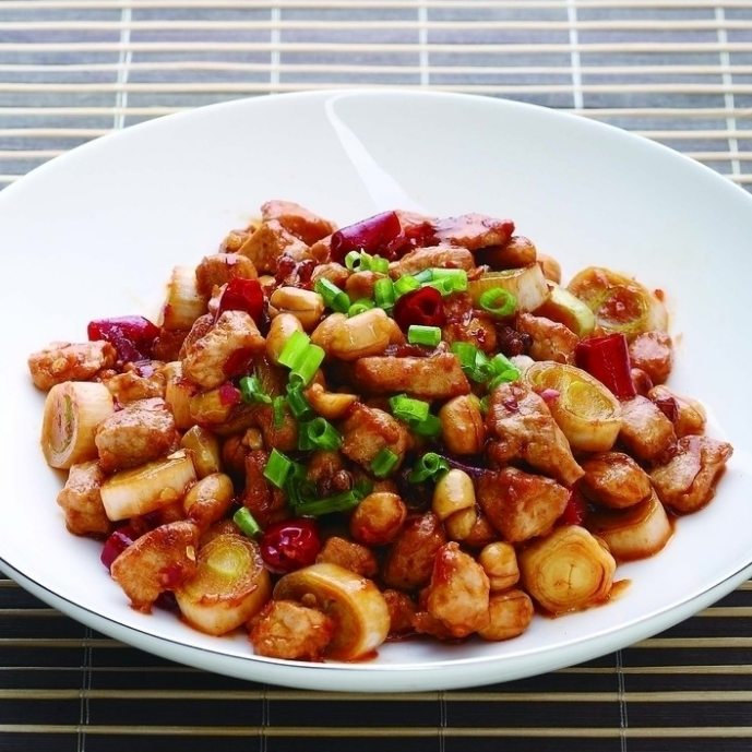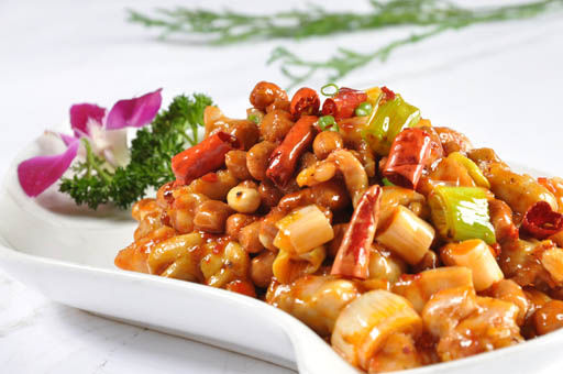 宫保鸡丁相传是由清朝山东巡抚、四川总督丁宝桢所创,他对烹饪颇有研究,喜欢吃鸡和花生米,并尤其喜好辣味。他在山东为官时曾命家厨改良鲁菜“酱爆鸡丁”为辣炒,后来在四川总督任上的时候将此菜推广开来,创制了一道将鸡丁、红辣椒、花生米下锅爆炒而成的美味佳肴。这道美味本来是丁家的私房菜,但后来尽人皆知,成为了人们熟知的宫保鸡丁。