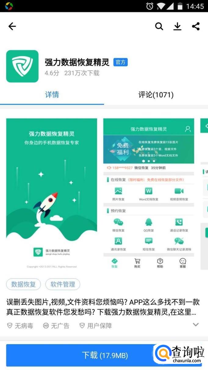 首先,我们可以在应用宝或者是应用商店里面下载“强力数据恢复精灵”
