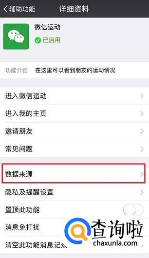 在“微信运动”的详细资料界面,点击下方的“数据来源”选项,对该项功能进行数据来源的授权。