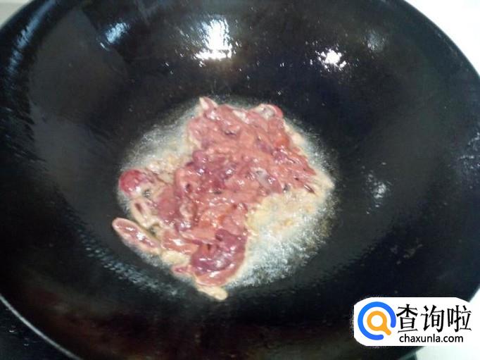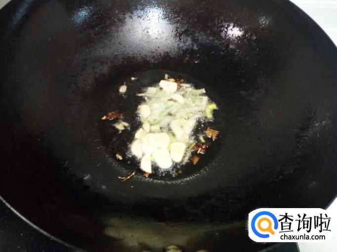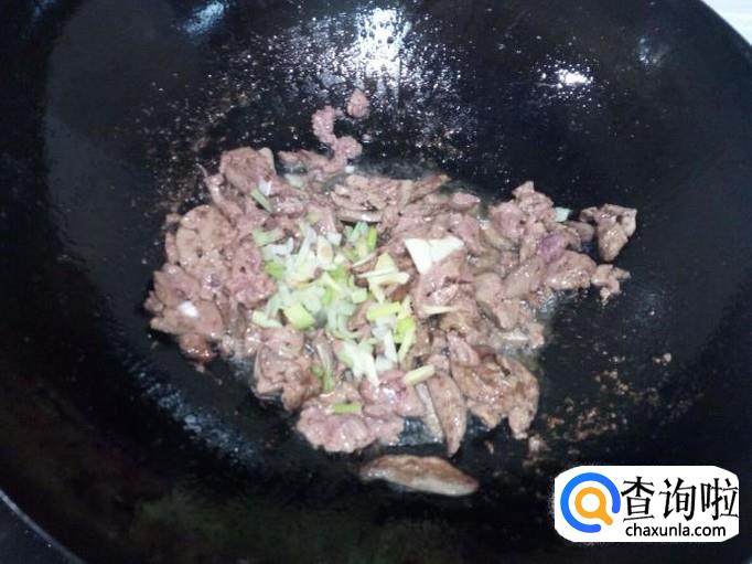 锅内重新放入油加热,油热后放入鸡肝翻炒,放入葱,姜。