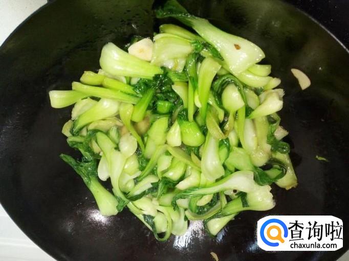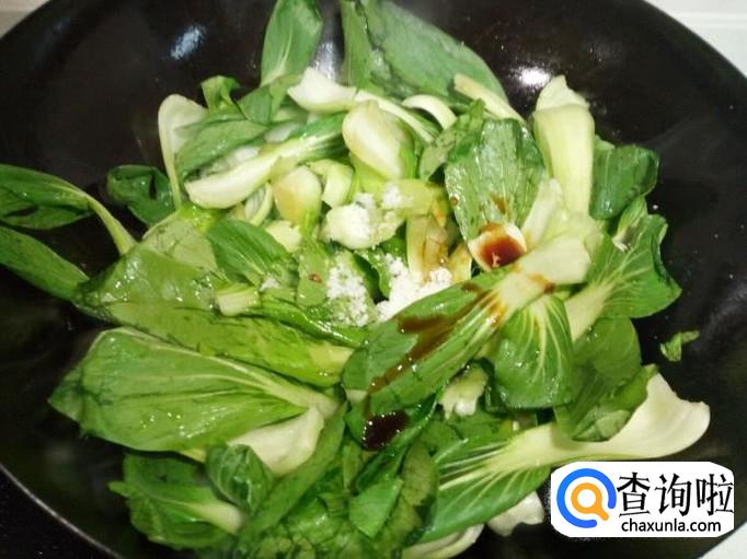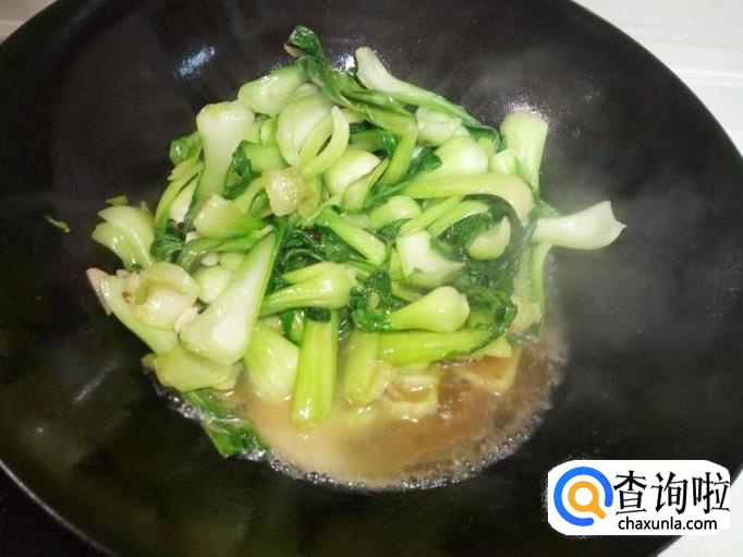 翻炒至油菜断生,倒入勾兑好的芡汁,芡汁粘稠后,放入味精,关火。