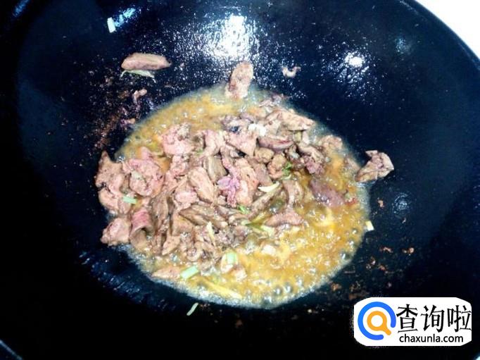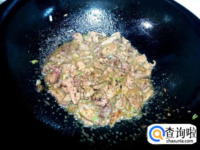 炒至鸡肝变脆,表面坚挺,倒入调和好的料汁,略翻炒至鸡肝沾满料汁后,关火。