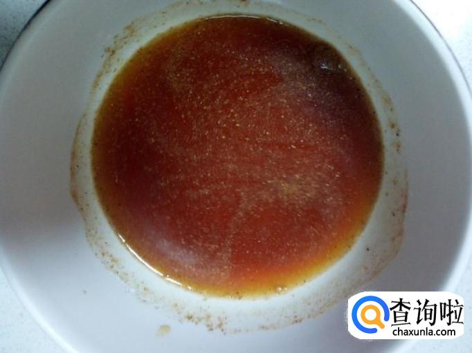 碗里放入五香粉,盐,味精,料酒,酱油,白糖,醋,少许蚝油,淀粉,兑少量水,调和成料汁。